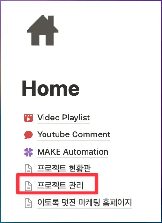 프젝트트 관리 페이지로 이동