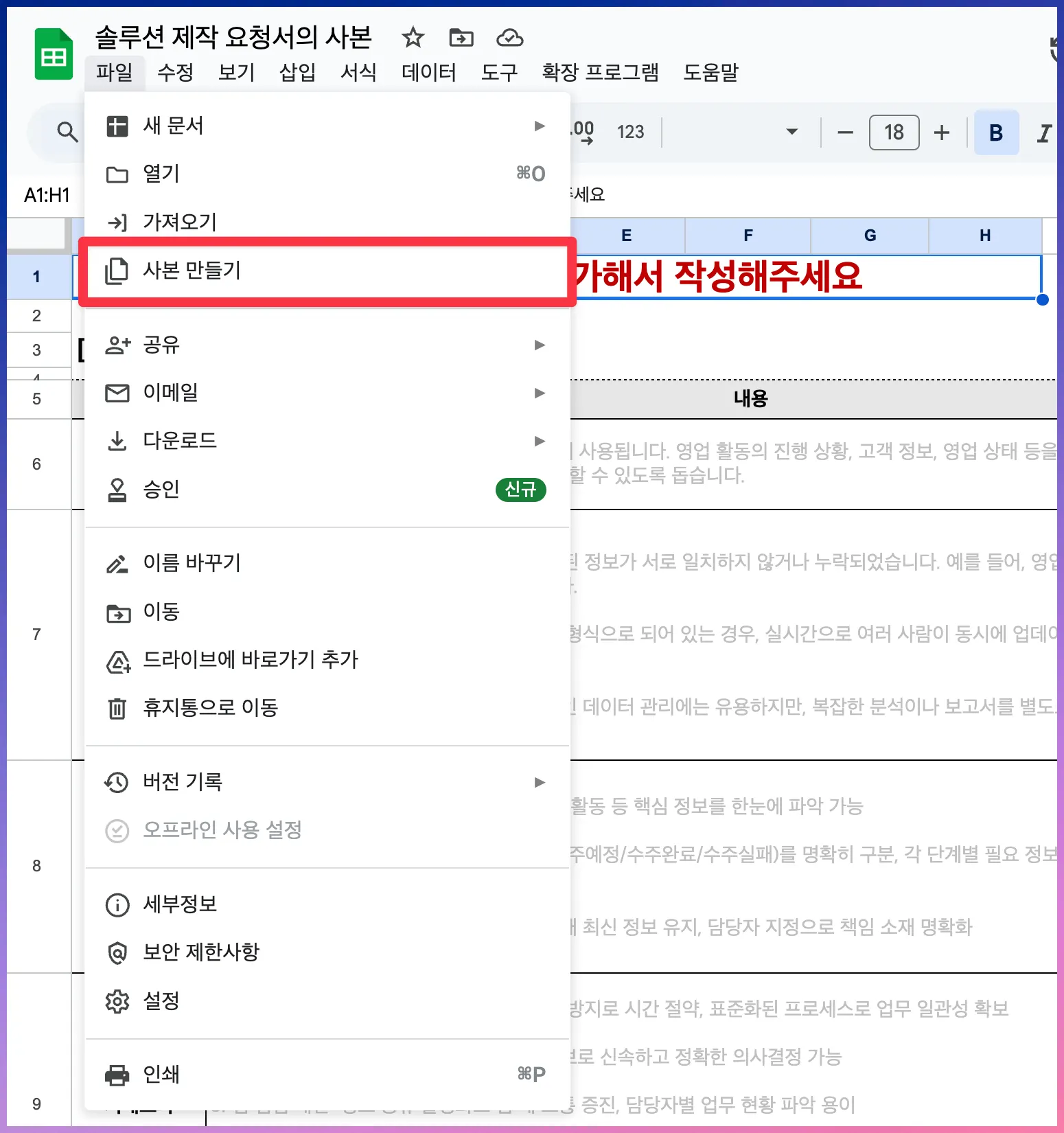사본 만들기 클릭해서 구글 드라이브에서 저장 후 내용을 입력하세요.
