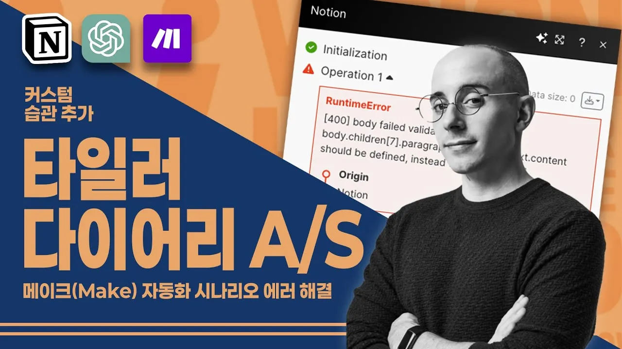 타일러 다이어리를 업그레이드하세요.(feat. 커스텀 습관 추가, 노션 포뮬러 수정, 메이크 자동화 에러 해결)