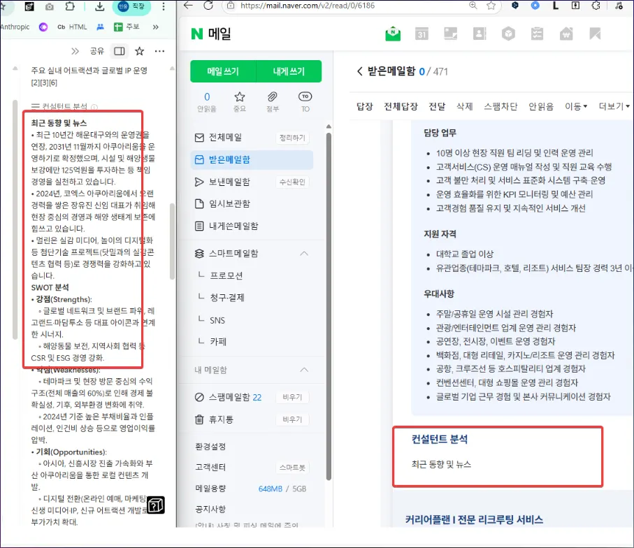 JD 발송을 했는데 컨설턴트 분석 내용이 메일에 들어가지 않습니다.