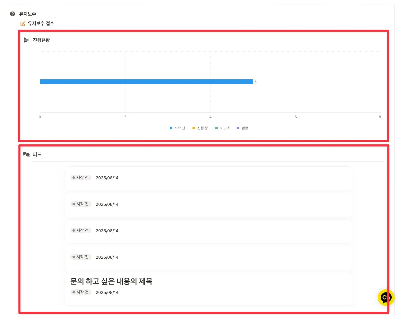 컨설팅 페이지 하단에 유지보수 진행현황과 피드에서 확인하시면 됩니다.