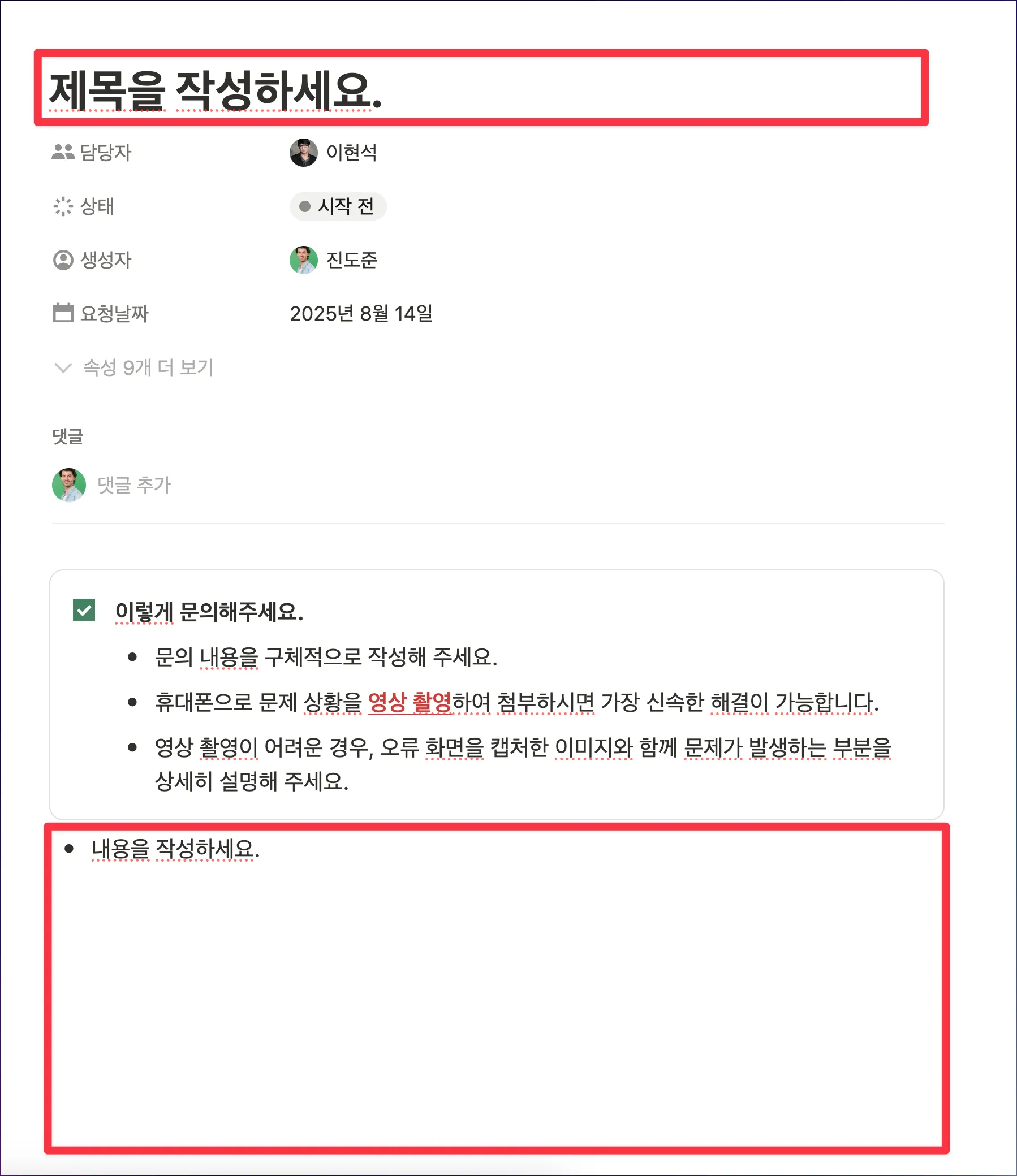 한 페이지에 질문은 하나만 작성 부탁드립니다.