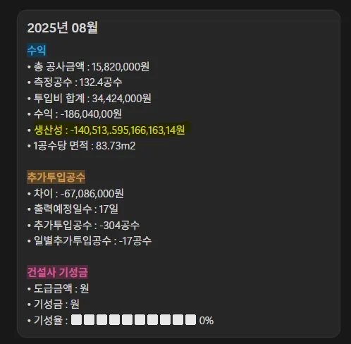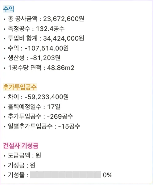 마지막 결과값에서 비현실적인 생산성 숫자값이 산출되었습니다. 단순 오류 인건지, 시스템에 각 층별, 구간별 공수에 따른 생산성이 반영에 문제가 생긴 건지 궁금합니다.