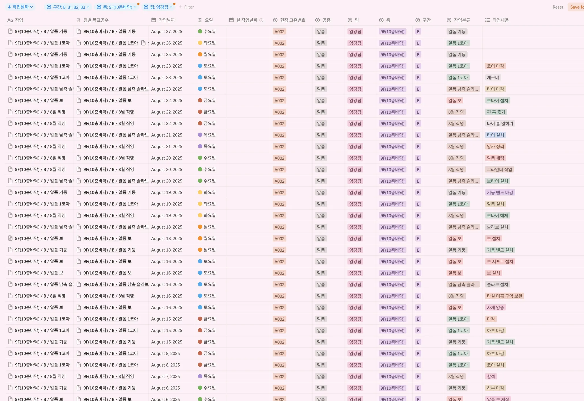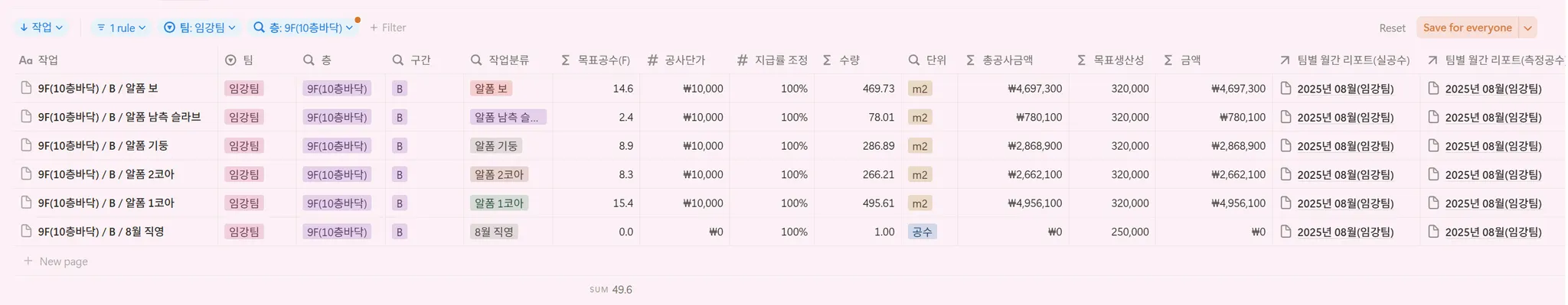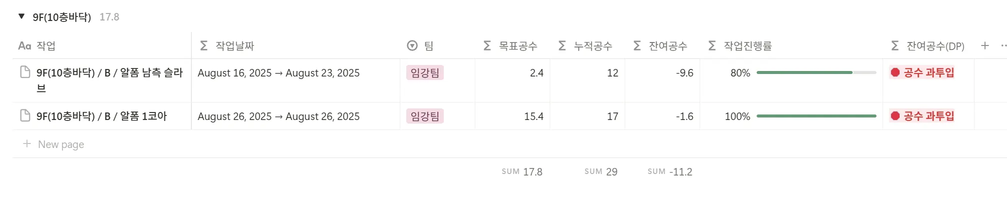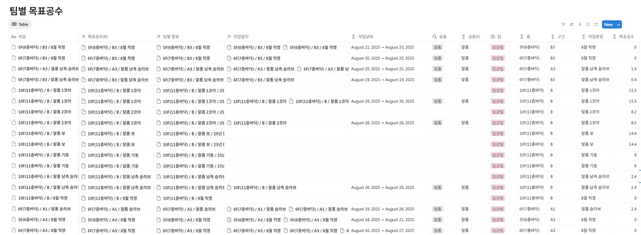 팀별 목표공수에서 임강 9층 물량 확인해보니 없음