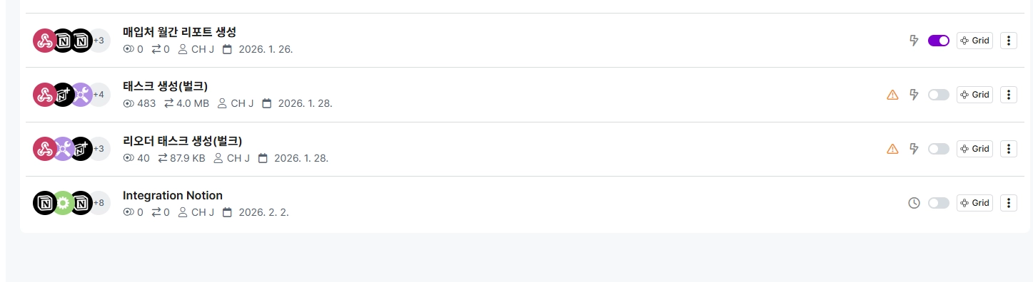 메이크 자동화 시나리오가 동작하는 걸 확인한다.