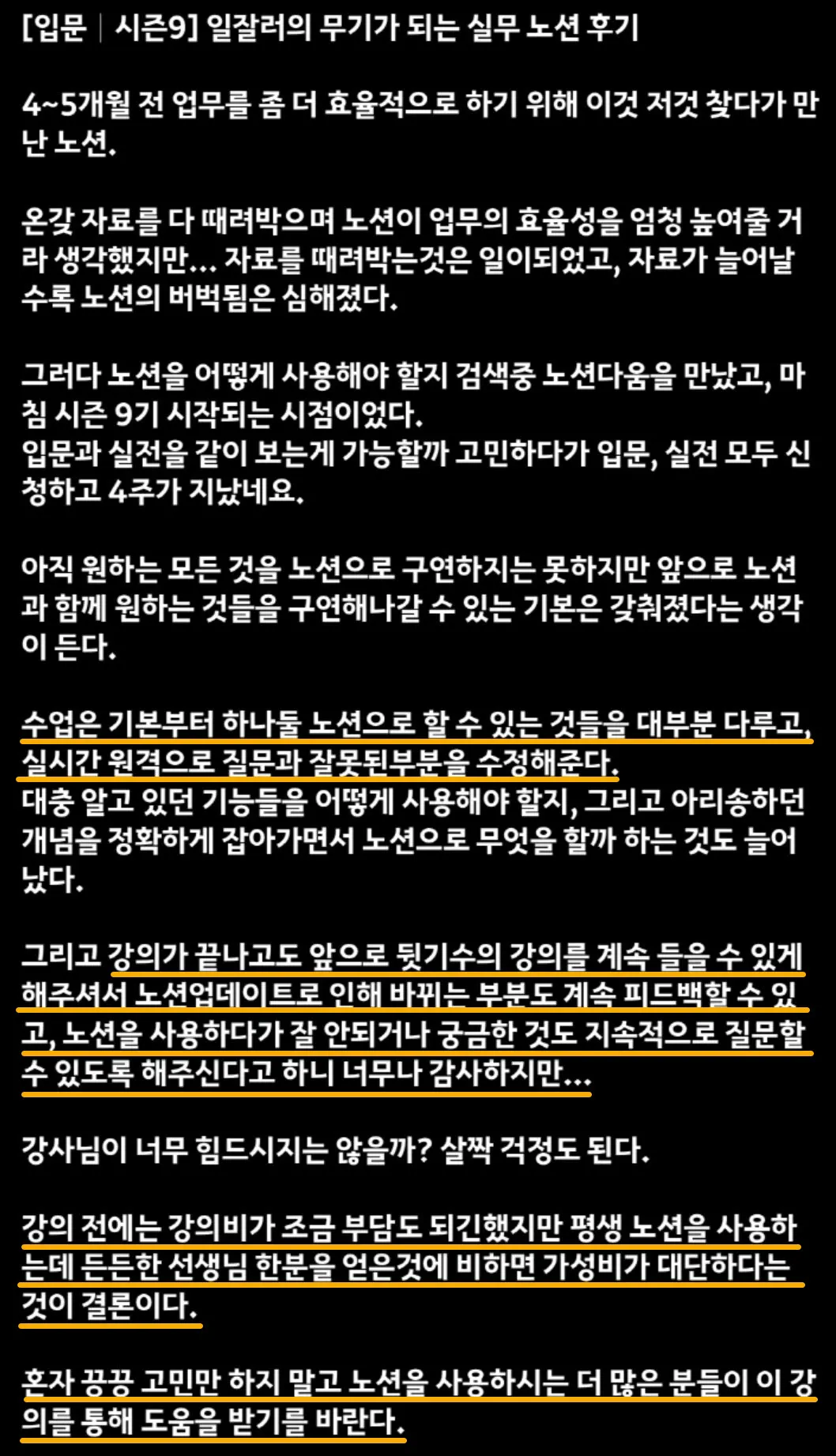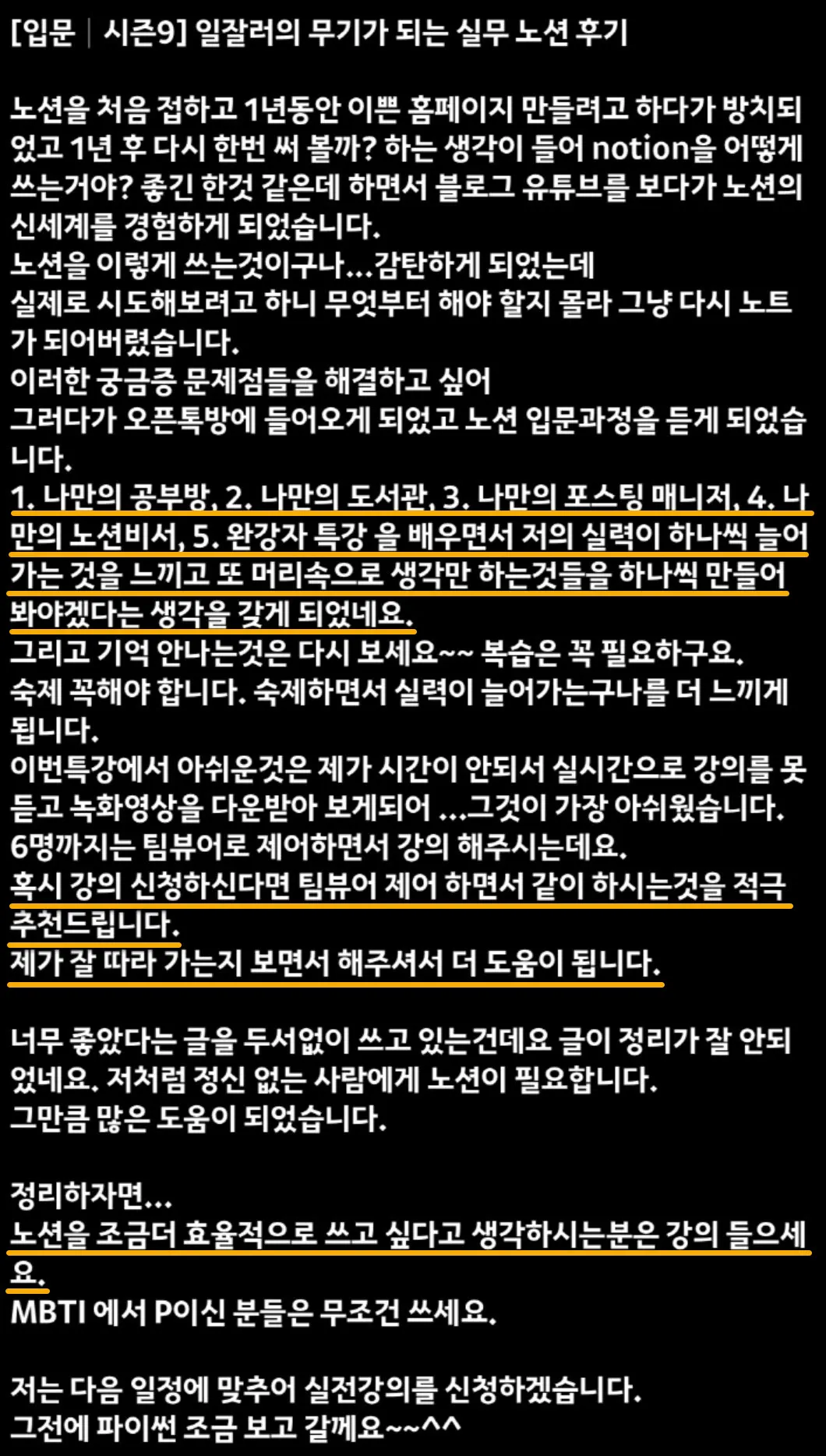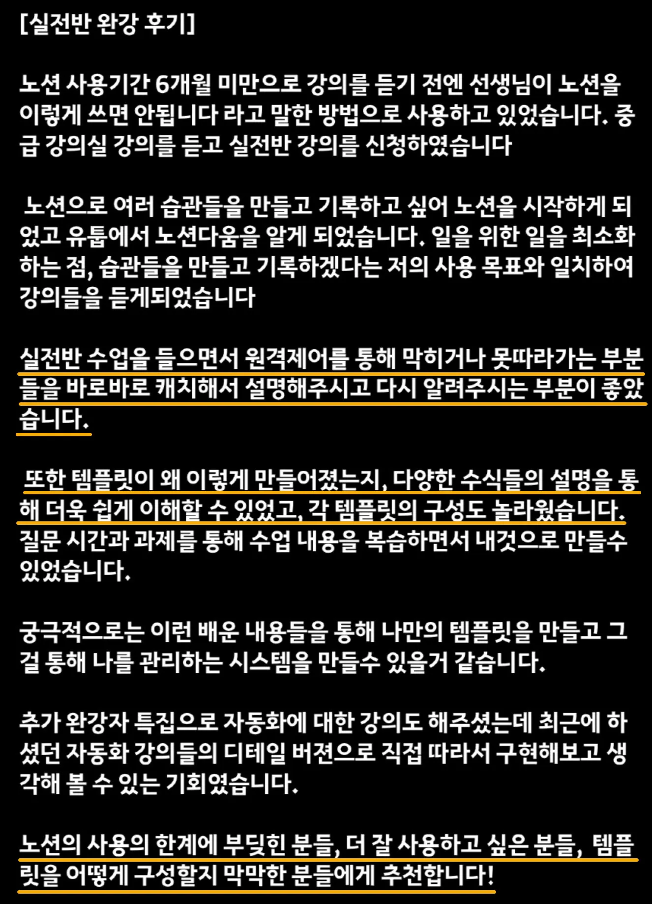 노션다움 강의는 실무 강의이기 때문에 어렵다는 단점이 있습니다.