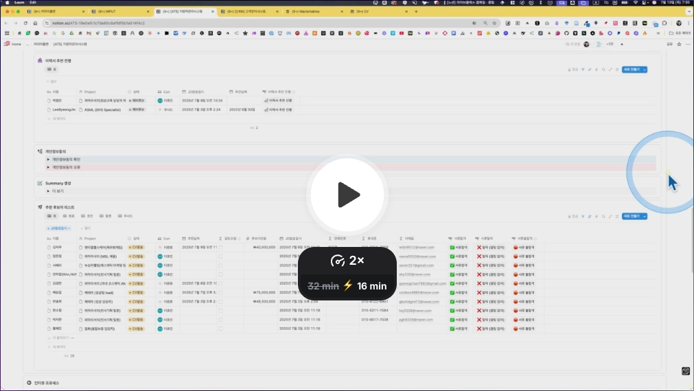1차 인터뷰 섹션에서 <1차 인터뷰 일시(확정)> 필드에 시간을 일벽했는데 2시간 이후로 나옵니다.