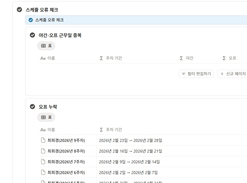 관리자 페이지 - 스케줄 오류체크