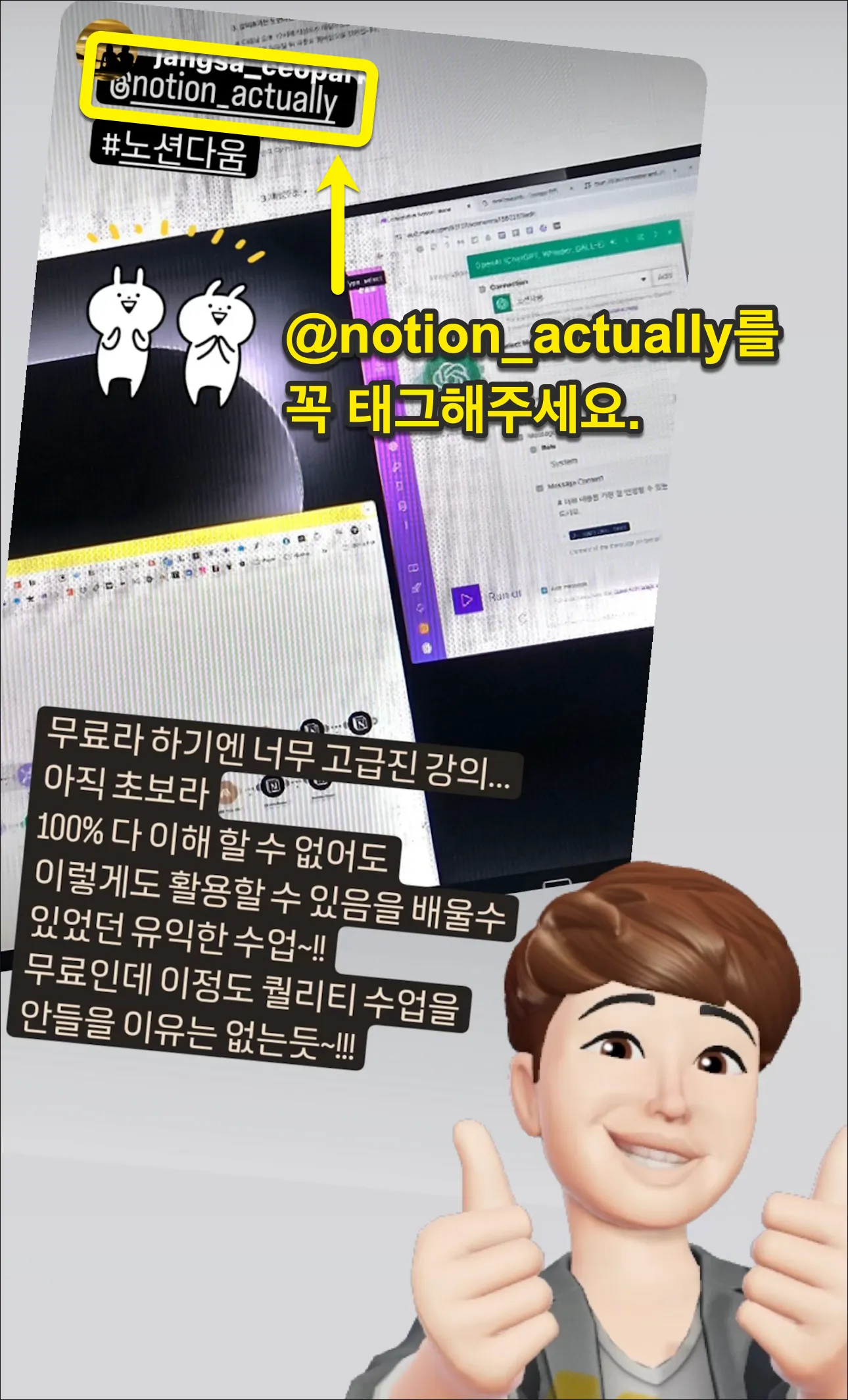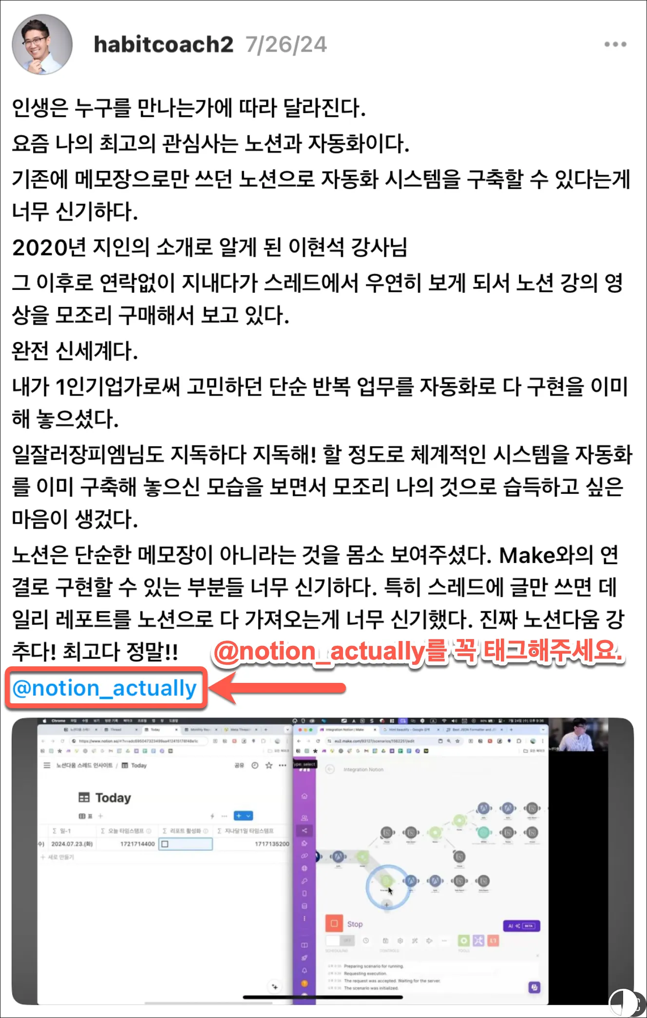 1. 후기를 노션다움 스레드 또는 인스타 스토리에 남긴다.